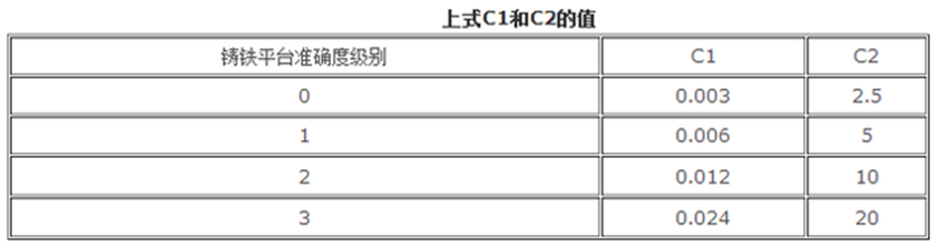 c1、c2--與平板準確度有關的系數(shù) 見下表